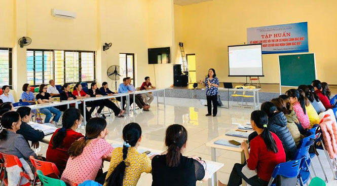Với sự truyền đạt của giảng viên Trung ương, các cộng tác viên sẽ được trang bị thêm kỹ năng mềm và cách sử lý tình huống khi làm việc với đối tượng trẻ em có hoàn cảnh đặc biệt và có nguy cơ rơi vào hoàn cảnh đặc biệt ở cơ sở.