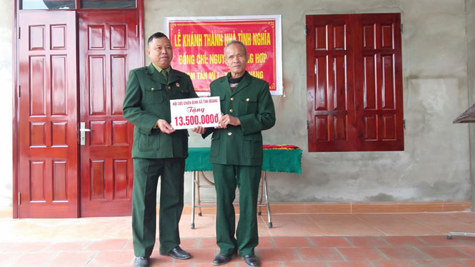 Ông Nguyễn Trọng Hợp sinh năm 1946, là hội viên Hội Nạn nhân chất độc da cam, mất 60% sức khỏe. Ông có 3 người con nhưng các con của ông đều bị ảnh hưởng bởi chất độc da cam, không thể đi lại hay làm bất cứ công việc gì. Bản thân ông Hợp chỉ ở nhà làm ruộng, làm vườn, kinh tế khó khăn. Trước hoàn cảnh đó, Hội NNCĐDC T.P Sông Công đã phối hợp với các tổ chức, đoàn thể xã Tân Quang hỗ trợ gia đình ông Hợp xây dựng ngôi nhà tình nghĩa. Sau hơn 3 tháng thi công, ngôi nhà cấp 4 được đổ mái bằng, rộng 61m2 đã hoàn thành và đưa vào sử dụng với tổng kinh phí trên 210 triệu đồng. Trong đó, Hội NNCĐDC thành phố hỗ trợ 20 triệu đồng, Hội Cựu chiến binh và Hội NNCĐDC xã Tân Quang hỗ trợ 17,6 triệu đồng, Lữ đoàn 210 (Quân khu 1) hỗ trợ ngày công giúp gia đình dọn dẹp, vệ sinh nhà… Số tiền còn lại do gia đình tích góp và vay mượn thêm anh em, hàng xóm.