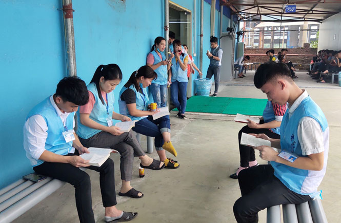 Đoàn viên Công đoàn Công ty Sr Tech thường tranh thủ giờ nghỉ giải lao để đọc sách từ tủ sách do Công đoàn các KCN tỉnh tặng.