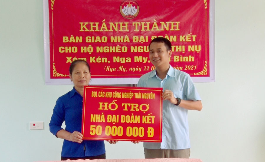 Ngày 22-4, Ban Quản lý các khu công nghiệp tỉnh phối hợp với Ủy ban MTTQ huyện Phú Bình tổ chức khánh thành, bàn giao nhà Đại đoàn kết cho gia đình bà Nguyễn Thị Nụ, ở xóm Kén, xã Nga My (ảnh).