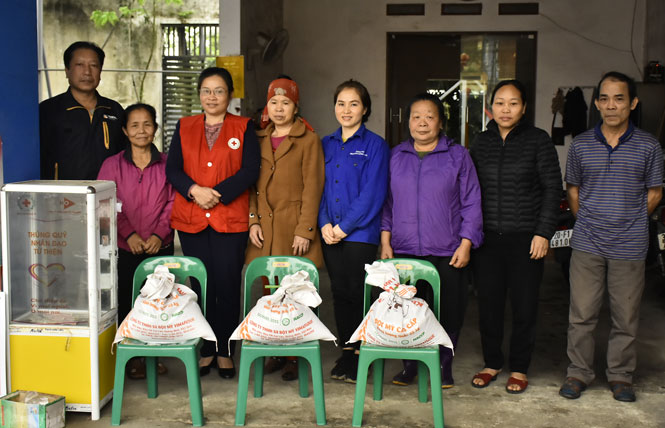 Có mặt ở đó, bà Phạm Thị Dung, hộ có hoàn cảnh khó khăn của xóm Quyết Thắng chia sẻ: Tôi năm nay 62 tuổi nhưng mắc bệnh tim, tiểu đường lại vừa bị tai biến, còn chồng tôi bị bệnh thần kinh gần 10 năm nay. Hai vợ chồng tôi thay nhau đi viện, sức khỏe yếu nên không kiếm được ra tiền. Cảm thương hoàn cảnh gia đình, các cô chú gọi tôi đến để hỗ trợ gạo ăn hàng tháng. Biết đây là số tiền của nhiều người góp lại từ mô hình “Thùng quỹ nhân đạo”, tôi rất cảm động biết ơn Hội Chữ thập đỏ và các nhà hảo tâm.