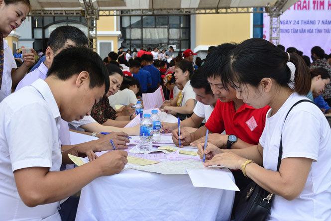 Cán bộ, công chức, người lao động đăng ký tham gia hiến máu tại Ngày hội “Thái Nguyên - Ngàn trái tim hồng” năm 2020.