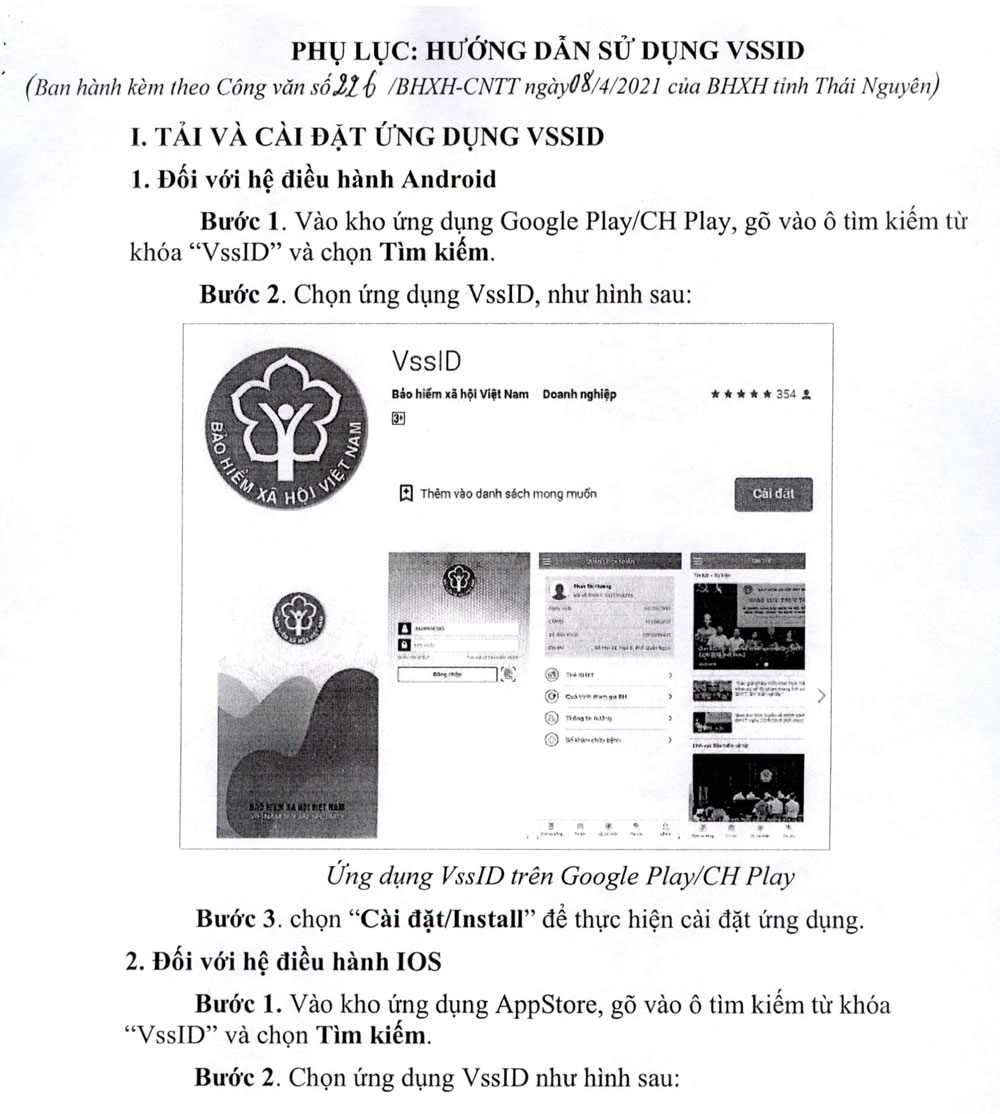 Ngày 8-4, lãnh đạo BHXH tỉnh Thái Nguyên ban hành văn bản số 226/BHXH-CNTT đề nghị các cơ quan, đơn vị, doanh nghiệp tham gia BHXH, BHYT trên địa bàn phối hợp thực hiện tuyên truyền, hướng dẫn cài đặt ứng dụng “VssID - BHXH số trên thiết bị di động” đến toàn thể cán bộ, công chức, viên chức, người lao động trong đơn vị.