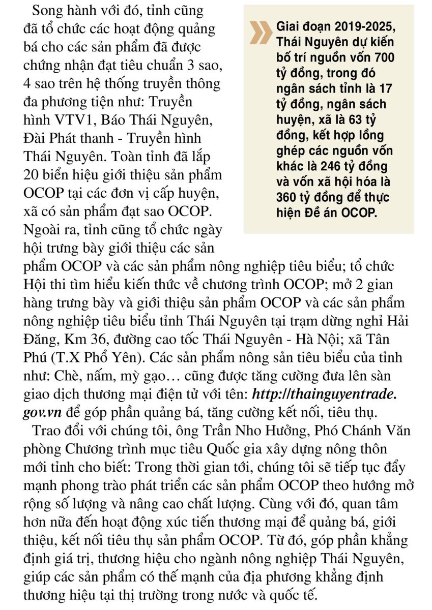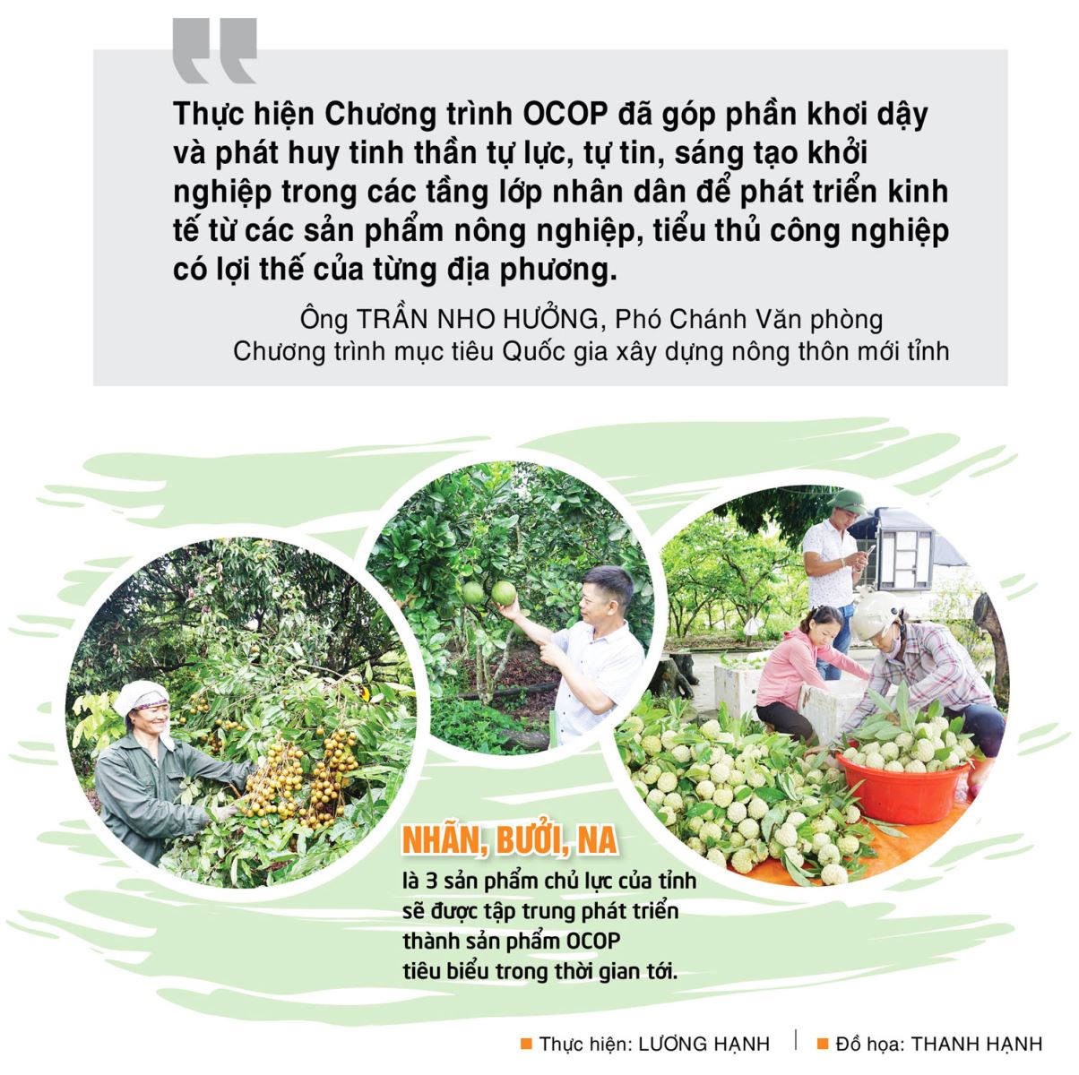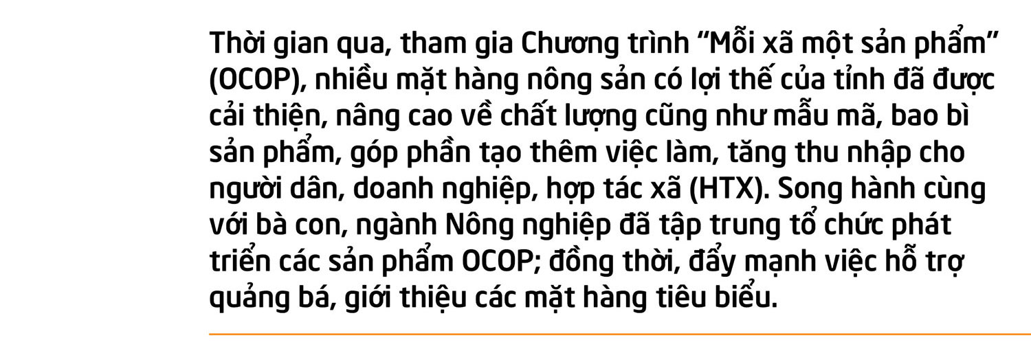 Thời gian qua, tham gia Chương trình "Mỗi xã một sản phẩm" (OCOP), nhiều mặt hàng nông sản có lợi thế của tỉnh đã được cải thiện, nâng cao về chất lượng cũng như mẫu mã, bao bì sản phẩm, góp phần tạo thêm việc làm, tăng thu nhập cho người dân, doanh nghiệp, hợp tác xã (HTX). Song hành cùng với bà con, ngành Nông nghiệp đã tập trung tổ chức phát triển các sản phẩm OCOP; đồng thời, đẩy mạnh việc hỗ trợ quảng bá, giới thiệu các mặt hàng tiêu biểu.