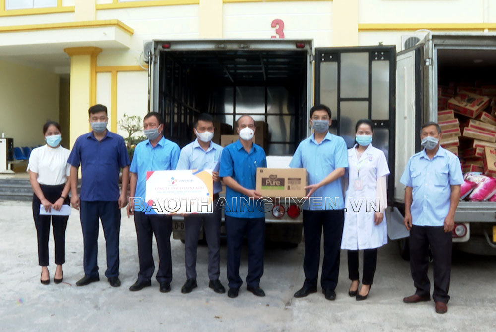 Tại đây, các thành viên trong Đoàn đã gửi lời hỏi thăm sức khỏe, động viên lực lượng đang làm nhiệm vụ phòng, chống dịch tại Trung tâm Y tế T.P Sông Công và huyện Đồng Hỷ, khu cách ly tập trung đặt tại Trường Cao đẳng Công nghiệp Việt Đức (T.P Sông Công).