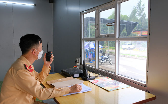 Toàn bộ các Chốt kiểm soát liên ngành của tỉnh được bổ sung lưới chống nắng tạo mọi điều kiện thuận lợi nhất để lực lượng tham gia trực chốt hoạt động hiệu quả. Trong ảnh: Chốt kiểm soát liên ngành phòng dịch COVID-19 nút giao Tân Lập (T.P Thái Nguyên).