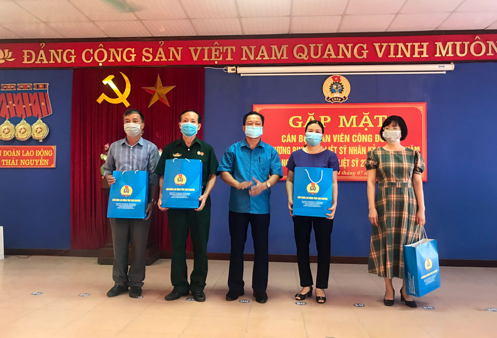 Ngày 24-7, Liên đoàn Lao động (LĐLĐ) T.P Thái Nguyên đã tổ chức gặp mặt các thương binh, con liệt sĩ nhân kỷ niệm 74 năm Ngày Thương binh - Liệt sĩ (27/7/1947 - 27/7/2021). Đây là những cán bộ, công đoàn đang công tác và sinh hoạt tại các công đoàn trực thuộc LĐLĐ thành phố.