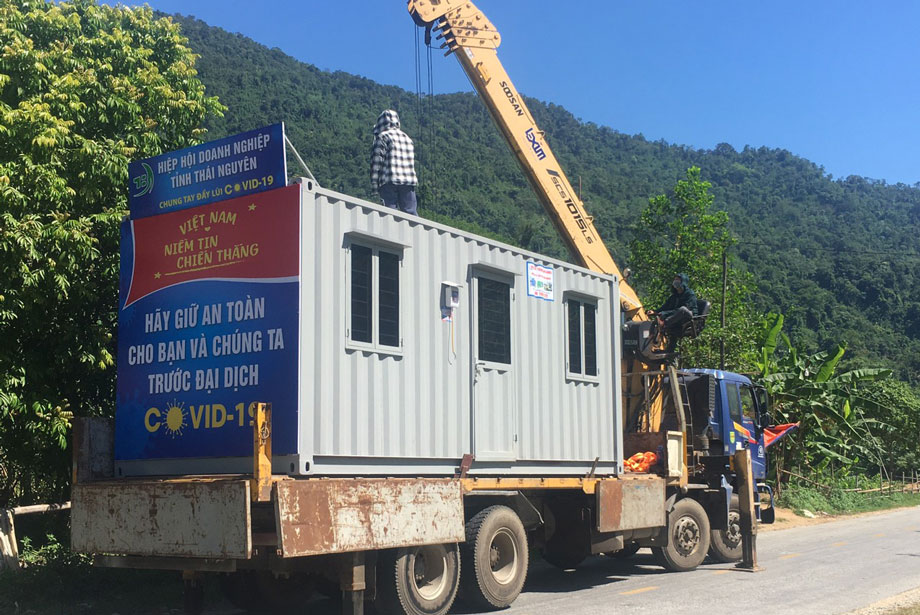 Từ ngày 20 đến 30-6, Hiệp Hội Doanh nghiệp tỉnh đã hỗ trợ 4 nhà container có máy lạnh tại 4 chốt kiểm soát liên ngành phòng chống dịch COVID-19 trên địa bàn các huyện Võ Nhai, Định Hóa, Đại Từ và T.X Phổ Yên. Toàn bộ kinh phí mua số container này (280 triệu đồng) được các hội viên Hiệp hội doanh nghiệp quyên góp, ủng hộ.