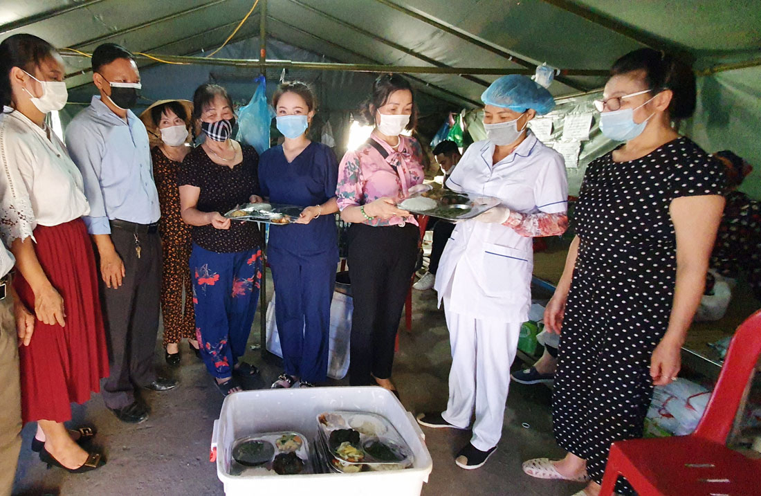 Còn bà Nguyễn Thị Hồi, thành viên cao tuổi nhất của nhóm (năm nay 68 tuổi) thì phụ trách chung. Bà đặc biệt quan tâm đến vệ sinh an toàn thực phẩm. Bà nói, các thành viên trước khi vào bếp phải rửa tay, đeo găng, khi nấu phải giữ khoảng cách. Sau gần hai tiếng đồng hồ, món ăn được nấu chín, các thành viên lại sắp vào đĩa, bọc màng thực phẩm và chuyển đến chốt kiểm dịch. Chị Nguyễn Thị Huệ, nhân viên y tế phường Quang Vinh thường xuyên trực tại chốt vào buổi trưa chia sẻ: “Tôi thường xuyên ăn trưa tại chốt. Trước đây, tôi phải mua cơm hộp. Từ khi được nhận được sự giúp đỡ của CLB, tôi không phải mua cơm nữa và cảm thấy yên tâm về an toàn thực phẩm, bảo đảm sức khỏe để thực thi nhiệm vụ”.
