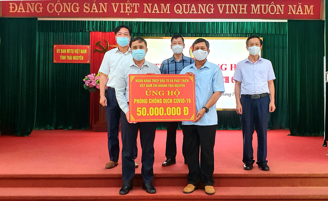 Sáng 8-7, Ban Thường trực Ủy ban MTTQ tỉnh đã tổ chức tiếp nhận ủng hộ phòng, chống dịch COVID-19 của các đơn vị, doanh nghiệp: Đại học Thái Nguyên; Ngân hàng TMCP Đầu tư và Phát triển Việt Nam, Chi nhánh Thái Nguyên; Nhà máy Xi măng Lưu Xá. Đồng chí Phạm Thái Hanh, Ủy viên Ban Thường vụ Tỉnh ủy, Chủ tịch Ủy ban MTTQ tỉnh trực tiếp tiếp nhận ủng hộ.