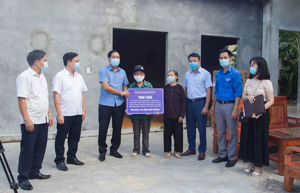Chiều 31-8, đại diện lãnh đạo Sở Văn hóa, Thể thao và Du lịch và lãnh đạo huyện Đại Từ đã đến thăm, tặng quà và trao tiền hỗ trợ gia đình ông Đặng Xuân Kỳ là hộ nghèo có thành viên là người có công với cách mạng (ảnh).