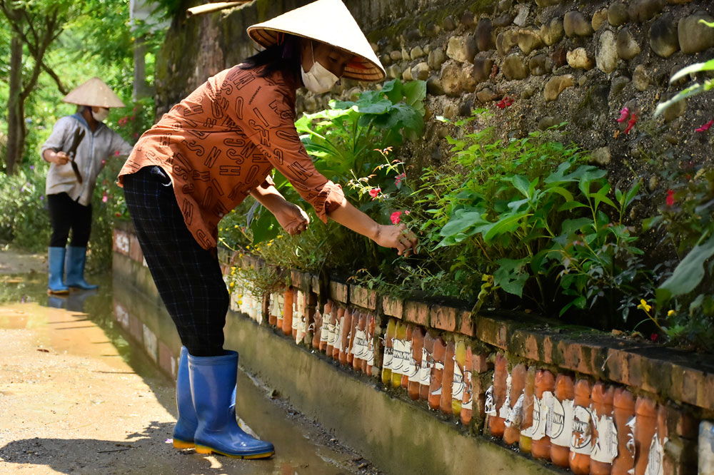 Từ nhiều năm nay, thay vì đốt, vứt rác thải nhựa ra môi trường hay bán phế liệu, bà Phạm Thị Quyên ở tổ dân phố 4 lại gom chúng lại, vệ sinh sạch rồi nhồi chặt vào những chiếc chai, lọ nhựa để tạo thành viên gạch sinh thái. Bà tự làm những viên gạch như thế đến khi nhiều thì mang ra nhà văn hóa để cùng Chi hội Phụ nữ xây bờ rào, khuôn viên. Việc làm những viên gạch đó trước đây rất xa lạ nhưng giờ đã trở thành thói quen, công việc hàng ngày của bà.