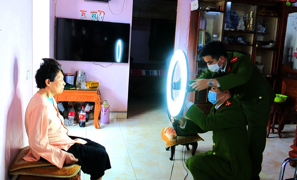 Công an huyện chỉ đạo công an các xã, thị trấn rà soát những trường hợp người già yếu, bệnh tật, gặp khó khăn trong việc đi lại, không thể đến điểm cấp căn cước công dân. Sau khi đã lên danh sách, các cán bộ, chiến sĩ Công an huyện trực tiếp mang máy móc, trang thiết bị về tận nhà cấp căn cước cho những trường hợp này.
