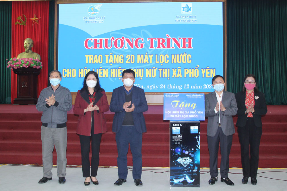 Ngày 24-12, Công ty CP Đầu tư xử lý nước sạch AQUA Việt Nam tổ chức trao tặng 20 chiếc máy lọc nước RO nhãn hiệu AQUA, tổng trị giá gần 120 triệu đồng, cho Hội Liên hiệp Phụ nữ T.X Phổ Yên.