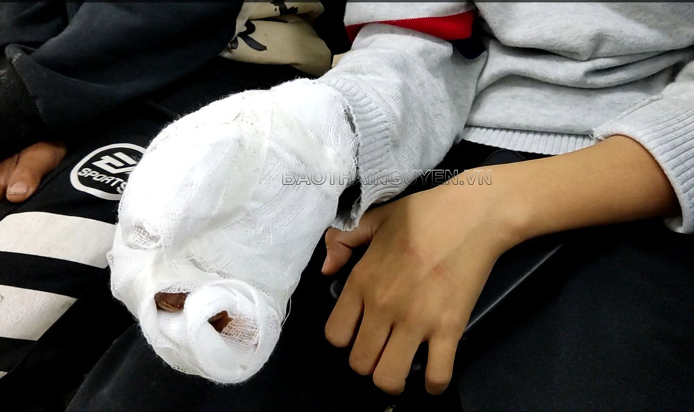 Ngày 2-1, Bệnh viên C Thái Nguyên tiếp nhận bệnh nhân Đan Hoàng V. (sinh năm 2008, trú tại tổ 1, phường Phố Cò, T.P Sông Công) nhập viện trong tình trạng bàn tay bị bỏng nặng với nhiều vết thương phức tạp. Sau khi thăm khám, các bác sĩ xác định bệnh nhân bị bỏng nhiệt mức độ 3, phải phẫu thuật để xử lý vết thương.