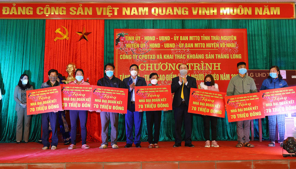 Tham gia Đoàn có các đồng chí: Phạm Thái Hanh, Ủy viên Ban Thường vụ Tỉnh ủy, Chủ tịch Ủy ban MTTQ tỉnh; Mai Thị Thúy Nga, Phó Chủ tịch HĐND tỉnh; đại diện một số sở, ban, ngành, đơn vị, huyện Võ Nhai, Công ty CP Đầu tư xây dựng và Khai thác khoáng sản Thăng Long.