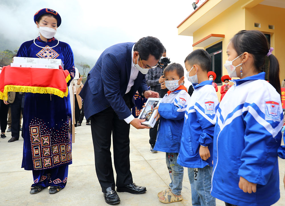 Đồng chí Chủ tịch UBND tỉnh tặng máy tính bảng cho học sinh có hoàn cảnh đặc biệt khó khăn của Trường Tiểu học và Trường THCS Thần Sa.