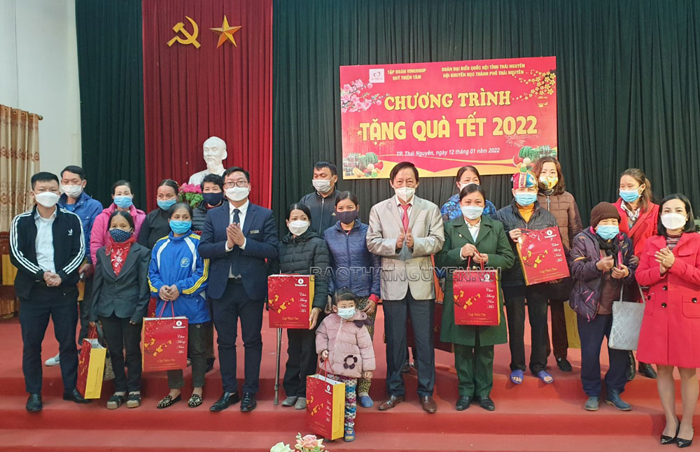 Chiều cùng ngày, Quỹ Thiện tâm của Tập đoàn Vingroup phối hợp với Hội Khuyến học T.P Thái Nguyên tổ chức Chương trình tặng quà tết cho 100 hộ nghèo, cận nghèo trên địa bàn thành phố có con, cháu đang học tại các trường phổ thông.