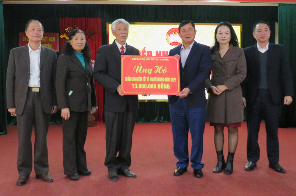 Ngày 12-1, Ban Thường trực Ủy ban MTTQ tỉnh đã tổ chức tiếp nhận kinh phí từ Câu lạc bộ hưu trí Thái Nguyên ủng hộ Tuần cao điểm Tết vì người nghèo năm 2022 (ảnh) và kinh phí của phường Phú Xá (T.P Thái Nguyên) ủng hộ công tác phòng, chống dịch COVID-19.