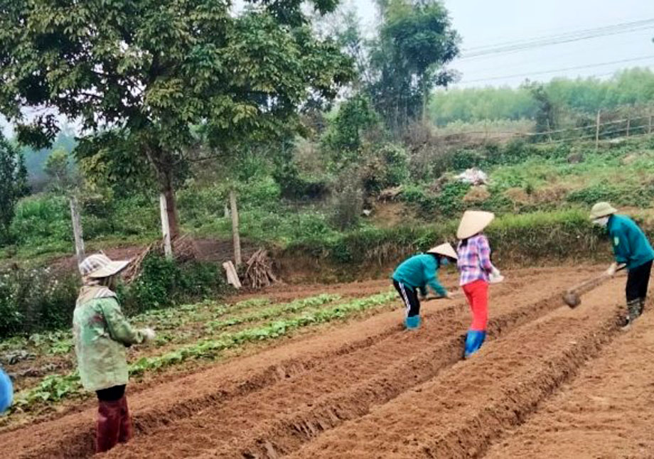 Hội LHPN xã Tân Hoà giúp hội viên nhiễm COVID-19 trồng màu vụ Xuân.