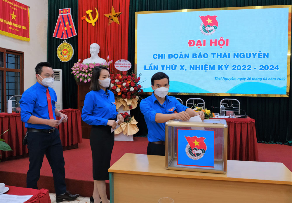 Các đại biểu bầu Ban chấp hành Chi đoàn Báo Thái Nguyên nhiệm kỳ 2022-2024.
