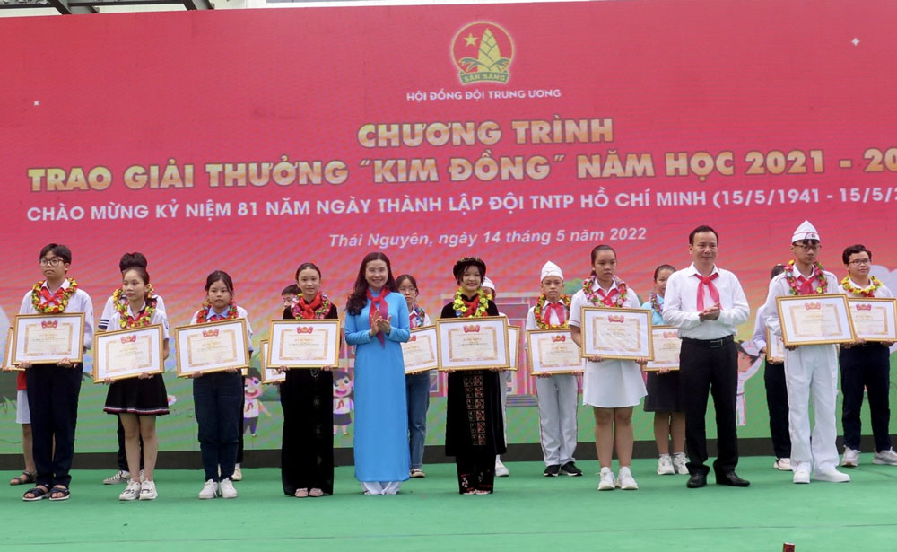 Sáng 14-5, tại Nhà Thiếu nhi Thái Nguyên, Hội đồng Đội Trung ương tổ chức Chương trình trao Giải thưởng Kim Đồng năm học 2021-2022 và tổ chức Ngày hội “Thiếu nhi Việt Nam - Học tập tốt, rèn luyện chăm” chào mừng Kỷ niệm 81 năm ngày thành lập Đội TNTP Hồ Chí Minh.