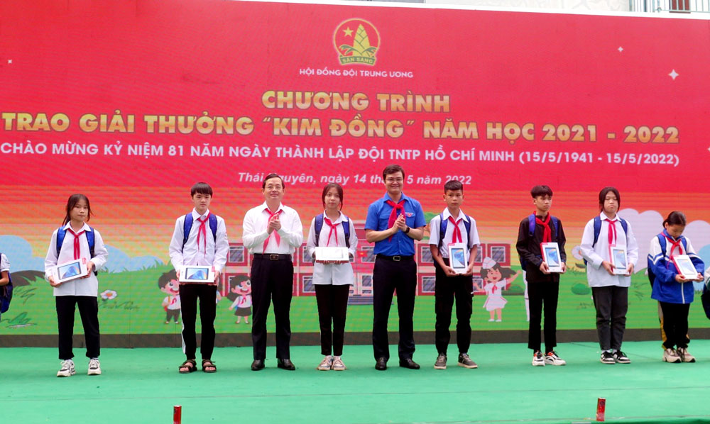 Sáng 14-5, tại Nhà Thiếu nhi Thái Nguyên, Hội đồng Đội Trung ương tổ chức Chương trình trao Giải thưởng Kim Đồng năm học 2021-2022 và tổ chức Ngày hội “Thiếu nhi Việt Nam - Học tập tốt, rèn luyện chăm” chào mừng Kỷ niệm 81 năm ngày thành lập Đội TNTP Hồ Chí Minh.