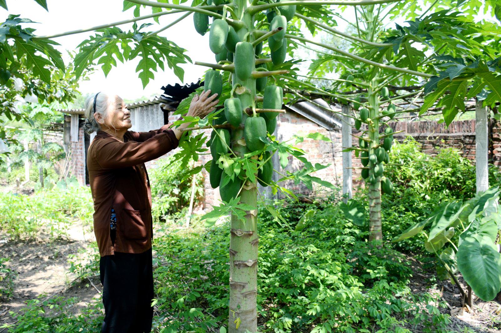 Hôm chúng tôi đến, Mẹ Thái đang tất bật thu hoạch lạc. Khu vườn có bàn tay chăm sóc của Mẹ trở nên xanh mát với nhiều loại cây ăn quả (như bưởi, ổi, hồng xiêm, đu đủ) cùng các loại rau, vừng, lạc... Ở tuổi ngoài 80, tóc đã ngả trắng màu thời gian, nhưng Mẹ Thái vẫn khá hoạt bát, nụ cười phúc hậu luôn thường trực. “Mẹ làm việc để rèn sức khỏe. Mẹ trồng mỗi thứ một ít để làm quà cho các con, cháu mỗi khi về thăm” - Mẹ chia sẻ với chúng tôi.