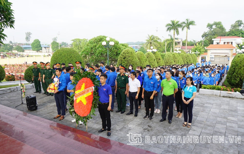 Tuổi trẻ TP. Thái Nguyên tưởng niệm các Anh hùng liệt sĩ tại Nghĩa trang Liệt sĩ Dốc Lim. Ảnh: Thu Nga