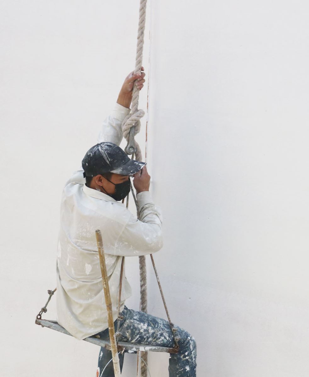 Người thợ phó mặc sự an nguy của mình vào một sợi dây thừng.