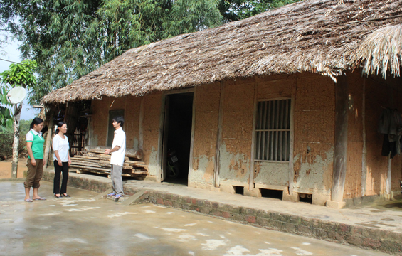 Sáng hôm chúng tôi đến, tuy trời đã ngớt mưa nhưng vợ chồng anh vẫn đang loay hoay với đống xô, chậu, xoong, nồi để hứng nước mưa từ mái nhà lá. Nền nhà đất vốn nhem nhuốc sau trận mưa càng trở nên ướt át. Các bức tường được đắp bằng đất của ngôi nhà cũng đã bong tróc đến thảm hại. Gian bếp được quây lại bằng những thanh tre nhỏ, nếu không được giới thiệu thì chúng tôi cứ ngỡ đó là chỗ chăn nuôi của gia đình. Vậy nhưng, có một điều rất đáng quý mà chúng tôi cảm nhận được từ ngôi nhà của vợ chồng anh đó là sự gọn gàng, sạch sẽ.