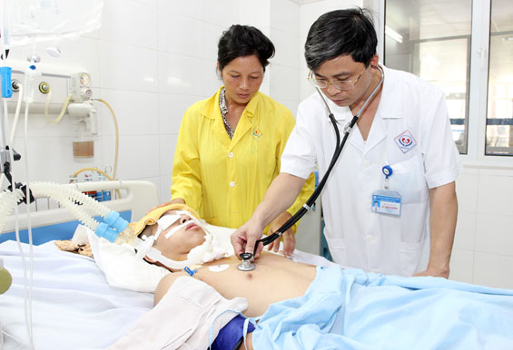 Chiều ngày 11-8, trong khi đang chơi thể thao với bạn, em Phạm Minh Khuê bất ngờ bị ngất và được bạn đưa vào cấp cứu tại Bệnh viện Đa khoa Trung ương Thái Nguyên. Tại đây, các bác sĩ chẩn đoán Khuê bị ngừng tuần hoàn gây tổn thương não nghiêm trọng, nguyên nhân có thể là do em bị ngừng tim khi đang chơi thể thao. Trao đổi với chúng tôi, Thầy thuốc ưu tú, Thạc sĩ Lê Hùng Vương, Trưởng Khoa Hồi sức tích cực - Chống độc, Bệnh viện Đa khoa Trung ương Thái Nguyên cho biết: Sau khi tiếp nhận bệnh nhân Khuê, chúng tôi đã tích cực cấp cứu, hồi phục nhịp tim, đặt máy thở, mornitor theo dõi bệnh nhân. Sau gần 4 ngày điều trị tích cực, huyết áp, nhịp tim của bệnh nhân Khuê đã ổn định nhưng chưa có phản xạ hồi tỉnh và vẫn còn nguy cơ cao gây tổn thương não không hồi phục. Hiện, chúng tôi vẫn đang cho bệnh nhân thở máy, đặt các monitor theo dõi diễn biến sức khỏe thường xuyên.