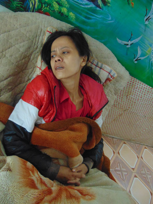Chị nằm trên chiếc ghế, khuôn mặt nhăn nhúm, nước mắt chực trào. Nỗi đau như nghẹn lại, phần vì vết mổ u nang buồng trứng chưa lành, phần vì nghĩ thương hai cô con gái đang bị căn bệnh thiếu máu huyết tán hành hạ hàng ngày.