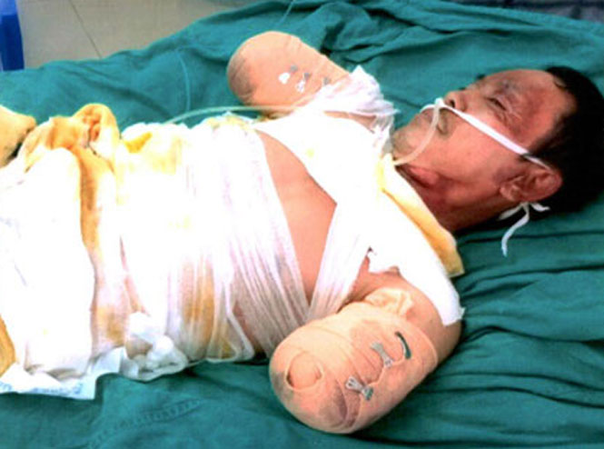 Ngay sau sự cố xảy ra, ông Phòng được người dân đưa vào Bệnh viện Trung ương Thái Nguyên cấp cứu. Do bỏng nặng dẫn đến toàn thân bị hoại tử, ông Phòng được chuyển tiếp về Viện Bỏng Quốc gia Lê Hữu Trác (Hà Nội) cấp cứu. Để giữ lại tính mạng, các bác sĩ buộc phải cắt bỏ 2 cánh tay và điều trị bỏng cấp tốc toàn thân. Các bác sĩ Viện Bỏng cho biết: Hiện ông Phòng đã qua cơn nguy kịch, nhưng sức khỏe bị suy kiệt; gan, thận bị hư nặng, đi tiểu ra nước màu đen như bồ hóng. Ông Phòng sẽ phải nằm điều trị tại Viện Bỏng dài ngày.