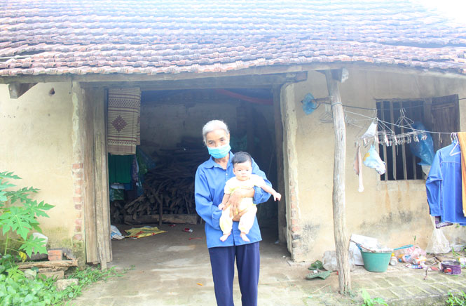 Men theo con đường đất nhỏ hẹp, chúng tôi đến thăm bà Hồng và các cháu. Trong căn nhà cũ nát, bà Hồng vừa dỗ dành đứa cháu nhỏ mới được hơn 3 tháng tuổi trên tay vừa ngậm ngùi chia sẻ: Mặc dù hoàn cảnh gia đình khó khăn, song với mong muốn được làm mẹ nên Hải vẫn quyết định làm mẹ đơn thân. Đứa con lớn là cháu Nguyễn Thị Thu Trang, năm nay 10 tuổi nhưng thường xuyên đau ốm nên thân hình gầy gò, yếu ớt. Cuối tháng 3-2021, đứa con thứ hai là cháu Nguyễn Bình An được 1,5 tháng tuổi, chị Hải không may qua đời khi bệnh động kinh tái phát. Lúc còn sống, do sức khỏe yếu nên chị Hải chỉ nhận làm thuê những công việc vặt cho người dân quanh làng để mẹ con duy trì cuộc sống qua ngày. Nay chị Hải mất, hai cháu nhỏ ở với bà Hồng.