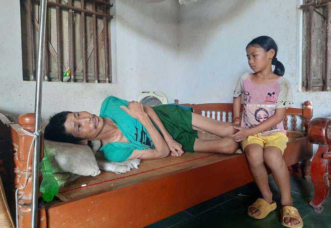 Trong ngôi nhà 3 gian không có vật dụng gì đáng giá, cháu Dương Thị Huyền Linh (con gái của ông Thành, sinh năm 2012) đang bóp chân cho bố; con trai lớn là cháu Dương Văn Vũ (sinh năm 1995, bị thiểu năng trí tuệ từ nhỏ) đứng dựa vào mép cửa, ánh mắt ngơ ngác. Nói chuyện với chúng tôi, cháu Linh dường như hiểu chuyện hơn các bạn cùng trang lứa. Cháu bảo: ‘Mẹ con mất rồi, giờ bố con lại bị như thế này, con thấy buồn và thương bố lắm”.