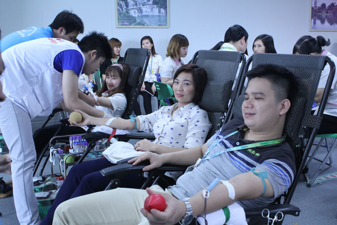 Sáng 5-5, tại Công ty TNHH Hansol Electronics Việt Nam thuộc Khu công nghiệp Yên Bình, Ban Chỉ đạo vận động hiến máu tình nguyện T.X Phổ Yên phối hợp với Trung tâm Huyết học - Truyền máu Bệnh viện Trung ương Thái nguyên tổ chức “Ngày hội hiến máu tình nguyện” đợt II năm 2018.