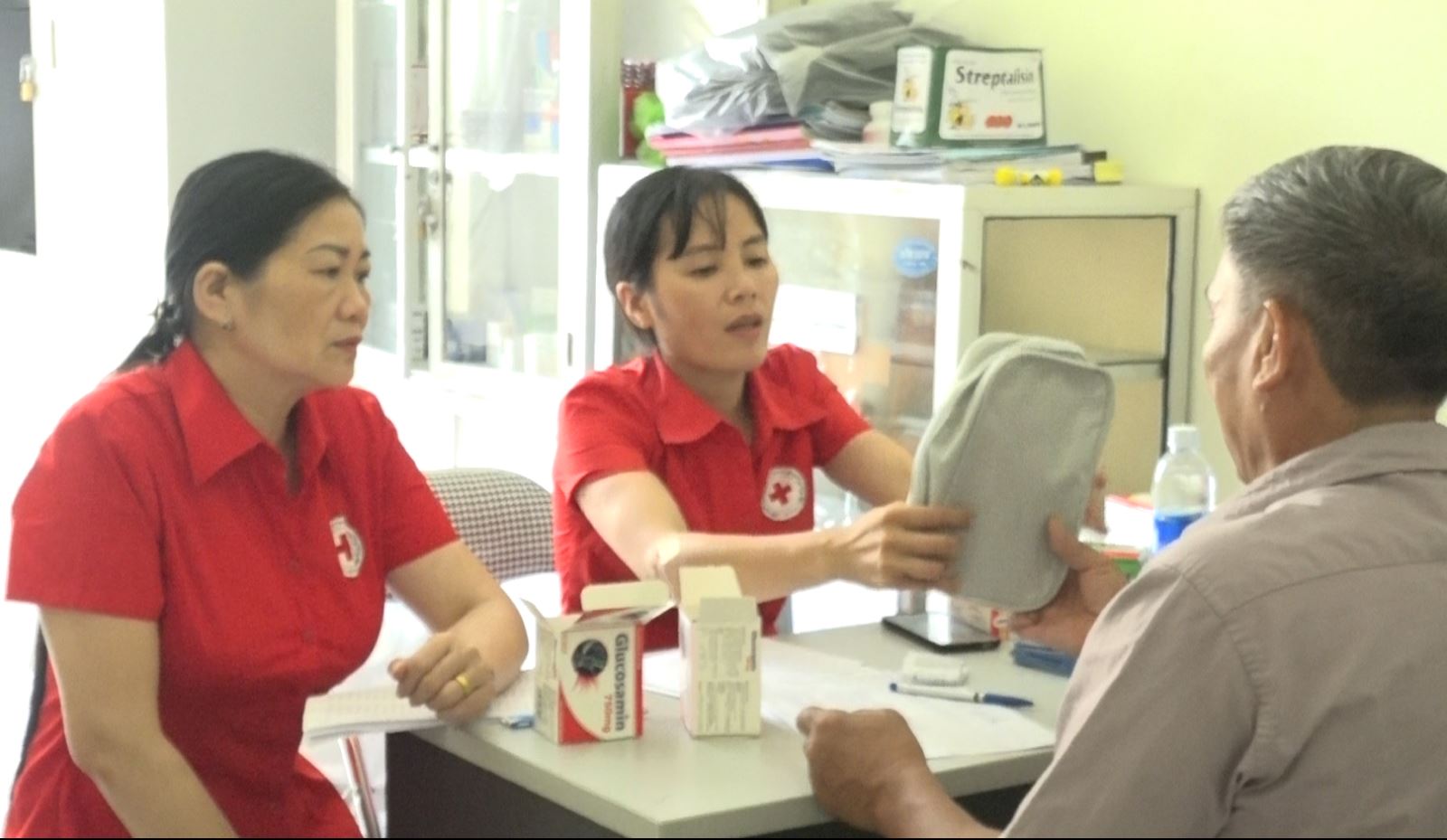 Trong 2 ngày 3 và 4-7, Hội Chữ thập đỏ huyện Phú Lương phố hợp với Trung tân Y tế huyện tổ chức khám, tư vấn sức khoẻ, cấp thuốc cho các đối tượng có hoàn cảnh khó khăn, gia đình chính sách, người cao tuổi tại 4 địa phương là: Vô Tranh, Động Đạt, thị trấn Đu, thị trấn Giang Tiên (ảnh).