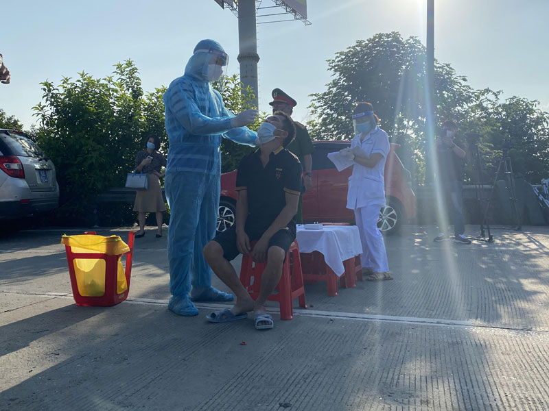 Sáng sớm 14/7, tại 22 chốt kiểm soát dịch của Hà Nội, lực lượng y tế có mặt sớm nhất và đóng vai trò chính trong việc kiểm tra những trường hợp nghi vấn. Đối với các trường hợp nghi nhiễm, lực lượng y tế tại các chốt sẽ lấy mẫu test nhanh tại chỗ.