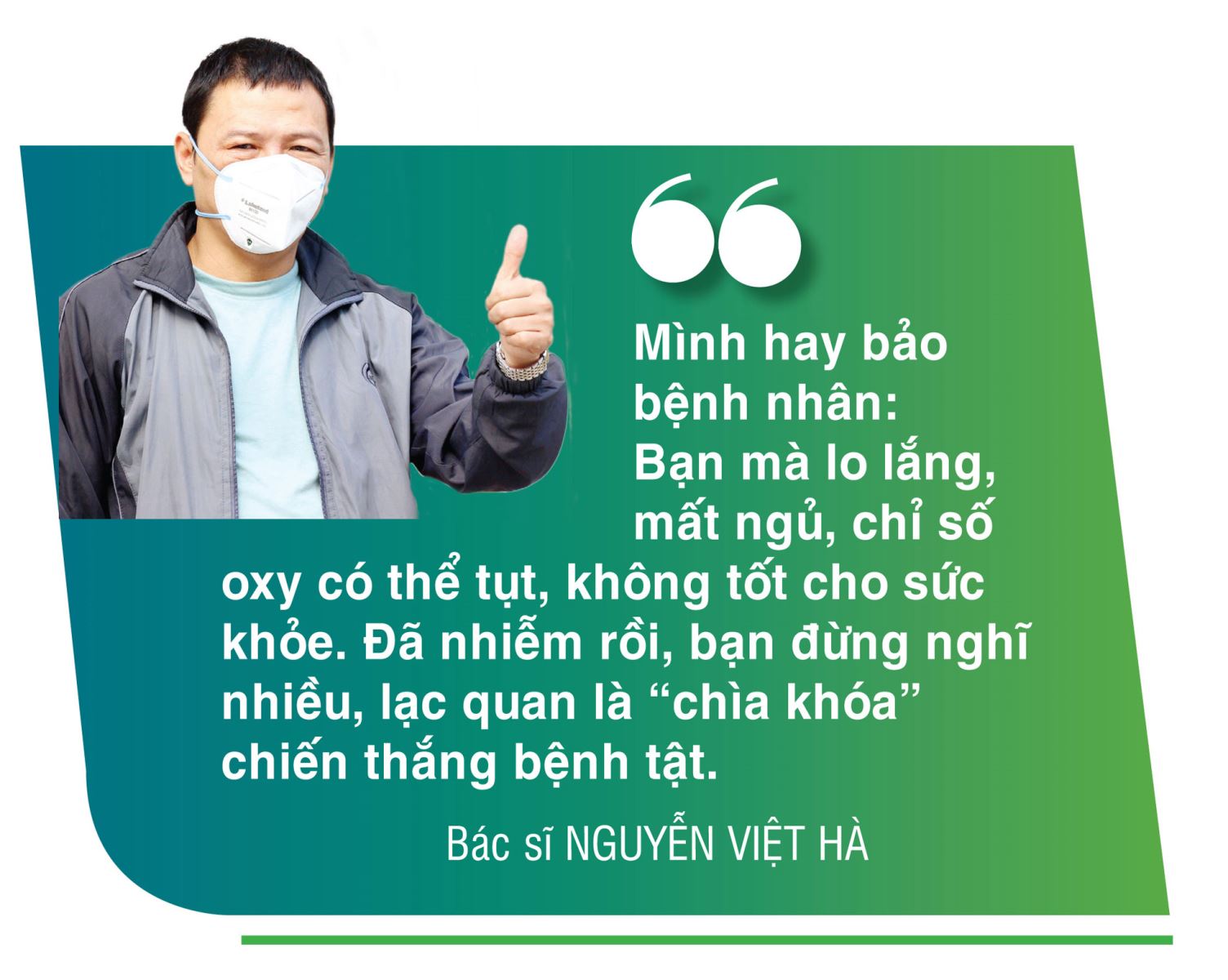 Có mặt tại nơi ấy, bác sĩ Nguyễn Việt Hà, Trưởng một kíp điều trị tại Bệnh viện cũng góp cho câu chuyện thêm rôm rả. Bác sĩ Hà đã trải qua nhiều tháng chữa trị cho các F0 tại T.P Hồ Chí Minh, khi trở về, anh là một trong những “nòng cốt” đầu tiên của Bệnh viện Điều trị COVID-19 số 1.