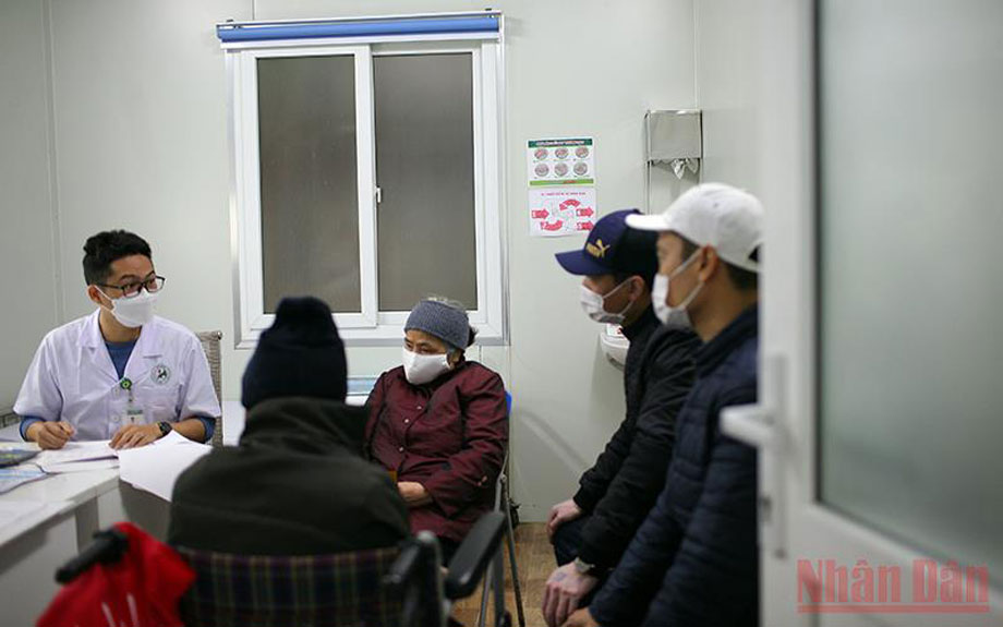 Nhiều gia đình cùng đi khám hậu COVID-19. (Ảnh: H.V)