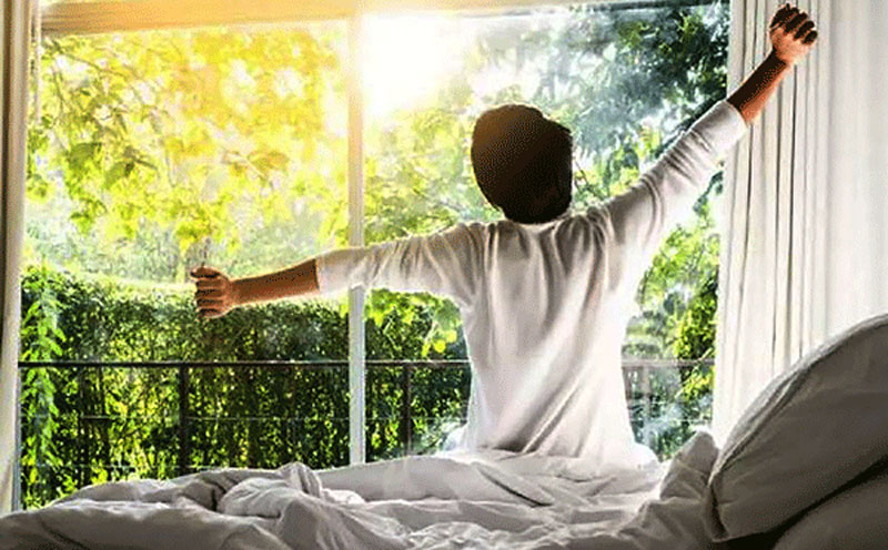 Thức dậy từ từ: Sau khi thức giấc, không nên ngay lập tức ngồi bật dậy mà hãy để cơ thể chuyển dần trạng thái từ ngủ sang thức, tránh việc cơ thể không kịp thích ứng, máu lưu thông chậm dẫn đến hoa mắt, chóng mặt... Nếu có thời gian, ngay khi còn nằm trên giường, hãy xoa nóng hai bàn tay rồi xoa mắt, cổ, gan bàn chân. Sau khi ngồi dậy, tiếp tục xoa nóng các vùng vai, lưng, đùi...