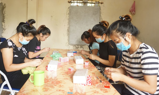 Bên cạnh đó, Cơ sở đã đẩy mạnh hoạt động dạy nghề, lao động trị liệu. Các học viên được học các nghề chăn nuôi, trồng trọt, may công nghiệp… 100% học viên tại tại Cơ sở được tham gia lao động theo các tổ với nhiều công việc khác nhau như: sơ chế long nhãn, cắt giấy thủ công, may, làm nông nghiệp…